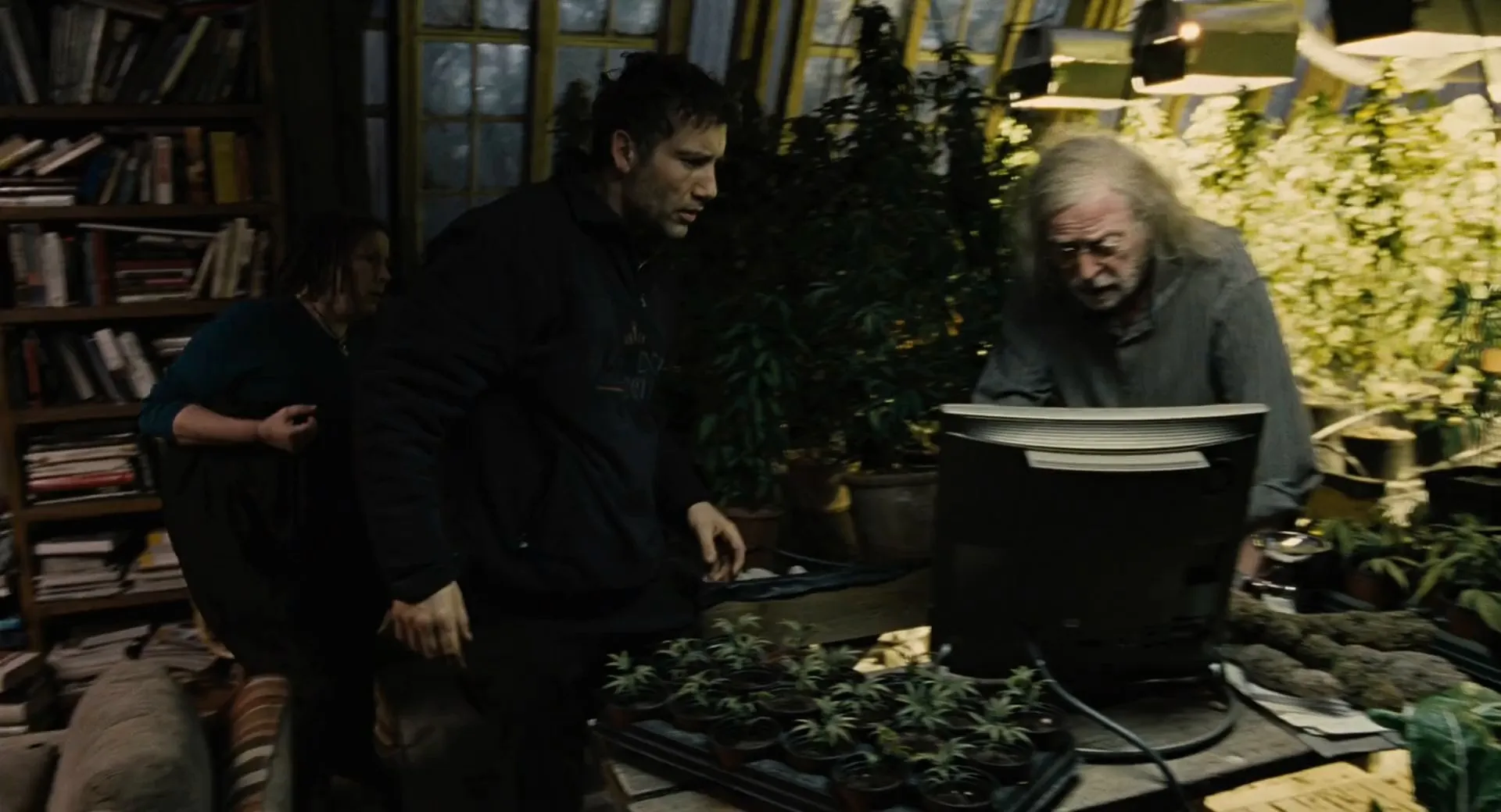 Cast: Clive Owen as Theo Faron, Julianne Moore as Julian Taylor, Clare-Hope Ashitey as Kee, Michael Caine as Jasper Palmer, Chiwetel Ejiofor as Luke, Pam Ferris as Miriam, Charlie Hunnam as Patric, Danny Huston as Nigel, Peter Mullan as Syd, Oana Pellea as Marichka, Jacek Koman as Tomasz, Phaldut Sharma as Ian, Juan Gabriel Yacuzzi as Baby Diego, Mishal Husain as Newsreader, Rob Curling as Newsreader, Maria McErlane as Shirley, Michael Haughey as Mr. Griffiths, Tehmina Sunny as Zara, Michael Klesic as Rado, Ilario Bisi-Pedro as Cigar Man, Caroline Lena Olsson as Caroline, Dhafer L'Abidine as Dhafer, Jon Chevalier as Café Customer, Rita Davies as Café Customer, Kim Fenton as Café Customer, Chris Gilbert as Café Customer, Phoebe Hawthorne as Café Customer, Rebecca Howard as Cafe Customer, Atalanta White as Café Customer, Laurence Woodbridge as Café Customer, Miriam Karlin as Caged German Grandmother, Philippa Urquhart as Janice, Jody Halse as Immigration Policeman, Martina Messing as Birgit, Simon Poland as Preacher Trafalgar Square, Barnaby Edwards as Ministry Official, Ed Westwick as Alex, Valerie Griffiths as Dog Track Woman, Billy Cook as Bookmaker, Gary Hoptrough as Simon, Rob Inch as Road Traffic Police, Jamie Kenna as Road Traffic Police, Maurice Lee as Samir, Bruno Ouvrard as Bruno, Denise Mack as Emily, Joy Richardson as Joy, Milenka James as Milenka, Somi De Souza as Somi, Francisco Labbe as Francisco, Thorston Manderlay as Thorston, Georgia Goodman as Georgette, Dorothy Grumbar as German Bus Passenger, Barry Martin as German Bus Passenger, Keith Dunphy as Bexhill Immigration Officer, Raymond Trickitt as Bexhill Immigration Officer, Nabil Shaban as Bexhill Market Hustler, Goran Kostić as Bexhill Market Hustler, Faruk Pruti as Sirdjan, Yolanda Vazquez as Spanish Woman, Andrew Brooke as Soldier, David Olawale Ayinde as African Slave (uncredited), Andy Callaghan as Riot Policeman / Soldier (uncredited), Ray Donn as Soldier (uncredited), Forbes KB as Elite Soldier (uncredited), P.D. James as Café Customer (uncredited), Jamie Lengyel as First Human Project Professor (uncredited), Jeff Leslie as Immigration Policeman (uncredited), João Costa Menezes as Terrorist (uncredited), Vidal Sancho as Basque Rebel (uncredited), John Warman as Taxi Driver (uncredited), Paul Warren as Injured Refugee (uncredited), Yana Yanezic as Woman (uncredited), Michael Snelders as Newsreader (uncredited), Steve Murphy as Soldier (uncredited), Mehmet Mahmut as Freedom Fighter (uncredited)